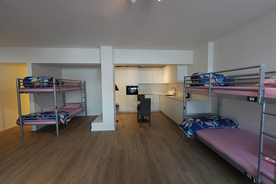 Ce dortoir comprend une salle de bain privative équipée d'une douche, d'un bidet, d'un sèche-cheveux et de chaussons. Il dispose de 6 lits superposés pour un séjour confortable et convivial. Superficie : 30 m².